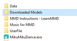 So in my main MMD folder, I ended up creating a “Downloaded Models” folder for making it easer to keep track. (Like so below)